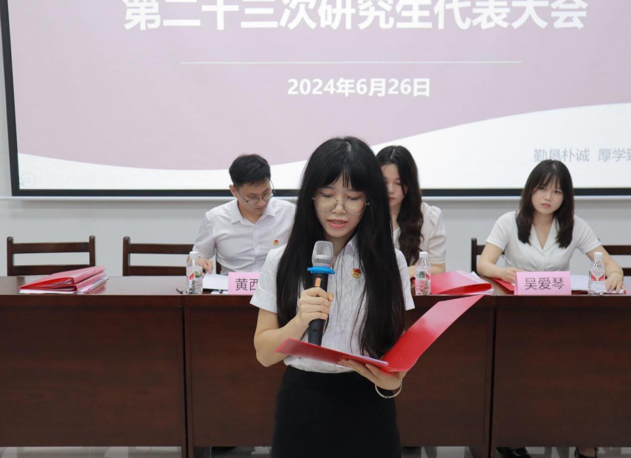 院团委书记刘佩瑶在致辞中表示,本次大会是焕发着青春风采、激昂着奋发斗志的盛会,不仅是免费A片 广大研究生同学民主政治生活中的重要时刻,更是免费A片 研究生工作承古拓新、迈向卓越的新篇章。接着,她围绕思想政治“引领力”、改革创新“推动力”、服务同学“支持力”和文化建设“感染力”等四个方面汇报了免费A片 研究生会的工作进展和成果。