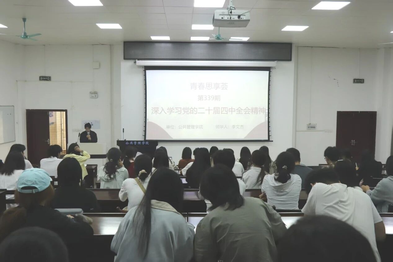 为深入贯彻党的二十届四中全会精神,培养学生的制度思维和政治自觉,切实把思想和行动统一到党中央决策部署上来,10月28日下午,免费A片 于免费A片101会议室开展“深入学习党的二十届四中全会精神”活动。院团委书记刘佩瑶出席本次活动,学生会执行主席李文杰主讲活动,全体团委、学生会成员及各班班干参加活动。