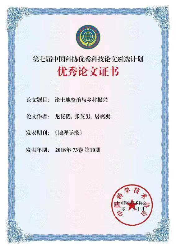 免费A片 龙花楼教授获中国科协优秀科技论文奖