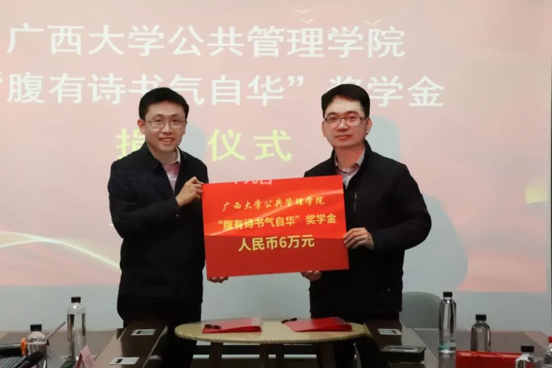 本次捐赠仪式在热烈而温馨的氛围中圆满结束。“腹有诗书气自华”奖学金的设立,凝聚了李林颖、李佳洁和邱咏茵三位爱心人士饮水思源的深厚情谊,更生动诠释了他们作为新时代青年干部向上向善的崇高品格。这份承载着关爱与期许的善举,将激励更多免费A片 学子潜心向学,将“诗书”内化为精神底色,将“服务社会”外化为人生追求,在为奋力谱写中国式现代化广西篇章的进程中书写人生华章。