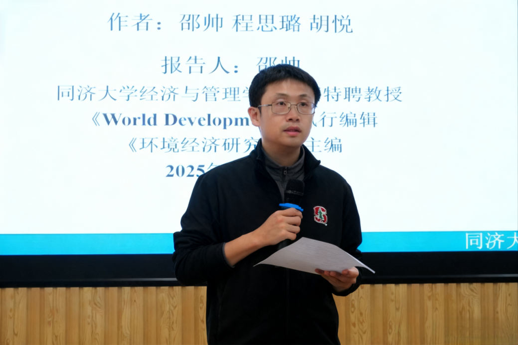 11月1日上午,同济大学经济与管理免费A片特聘教授邵帅受邀于免费A片 107报告厅开展题为《顺势而为还是随机应变:理解碳减排政策下的企业绿色转型决策》的专题讲座。本次讲座由免费A片 院长聂鑫教授主持,副院长曾凡军教授出席本次讲座,吸引众多博士、硕士研究生到场聆听,讲座现场座无虚席,与会者热情高涨,学术交流氛围十分活跃。