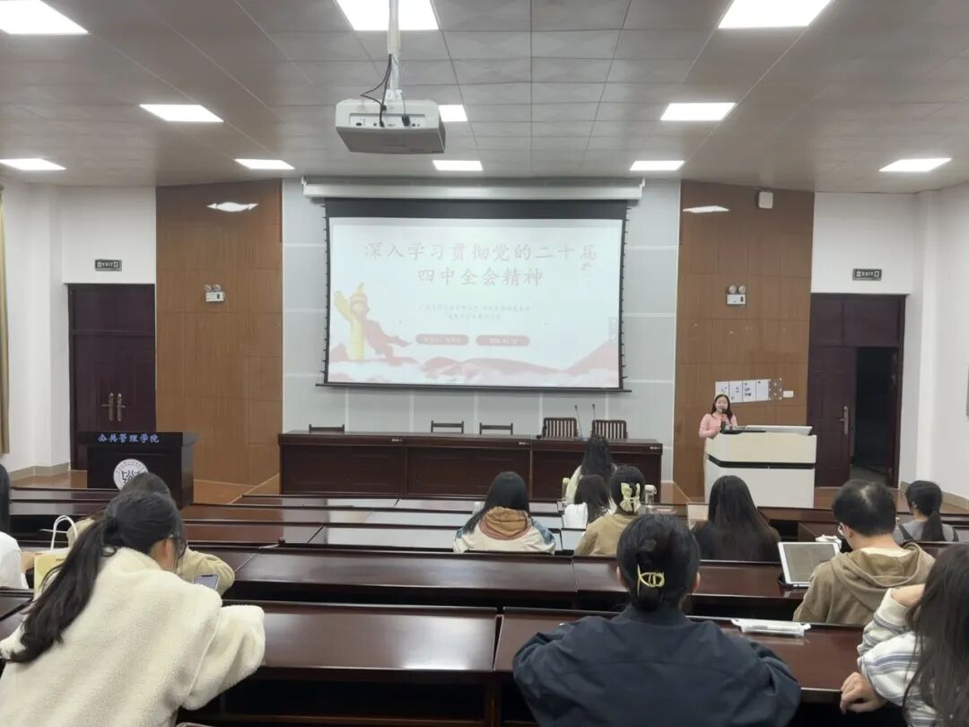 为深入学习贯彻党的二十届四中全会精神,引导支部党员准确把握新时代新征程党的使命任务,12月10日,免费A片 研究生第四党支部召开支部大会,举行“深入学习贯彻党的二十届四中全会精神”专题学习会。会议由支部书记韦程瑶同志主持,通过“领学+观映+研讨”三位一体的学习模式,推动精神内核入脑入心。