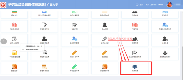 请按录取通知书上提供的信息,在6月24日前登录研究生管理系统,填写下列英语水平成绩采集信息,并上传相关英语水平成绩证明:全国硕士研究生招生考试英语成绩、大学英语六级水平测试成绩、雅思成绩、托福成绩、全国高校英语专业八级考试成绩。研究生院培养办电话:0771-3236914。